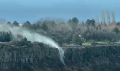 Clip: Cận cảnh thác nước “chảy ngược” lên trời giữa gió mạnh khiến nhiều người kinh ngạc