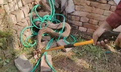 Cận cảnh bắt sống con trăn "khủng" dài 3,6 mét trong vườn nhà dân