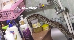 Một phụ nữ sinh sống tại Trung Quốc đã không khỏi hoảng hốt khi phát hiện một con trăn bất ngờ bò vào phòng tắm của căn hộ nằm trên tầng 8.