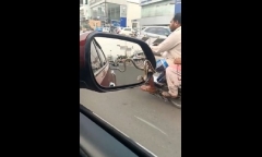Clip: Đang lái xe, tài xế "đứng hình" khi thấy "bé na" thò ra từ gương chiếu hậu