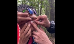Một người đàn ông trong nhóm cảm thấy cảm giác đau buốt trong mắt, khiến bạn bè anh phải kiểm tra và phát hiện ra con đỉa nhỏ bám vào nhãn cầu.