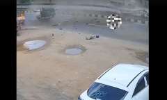 Theo những hình ảnh ghi lại từ camera giám sát bên đường, một chiếc xe con đã trông như bị hất tung lên không trung, lộn ngược rồi đâm xuống đường.