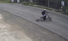 Camera ghi lại khoảnh khắc xe đạp điện độ chế rớt bánh, nam sinh ngã sõng soài trên đường