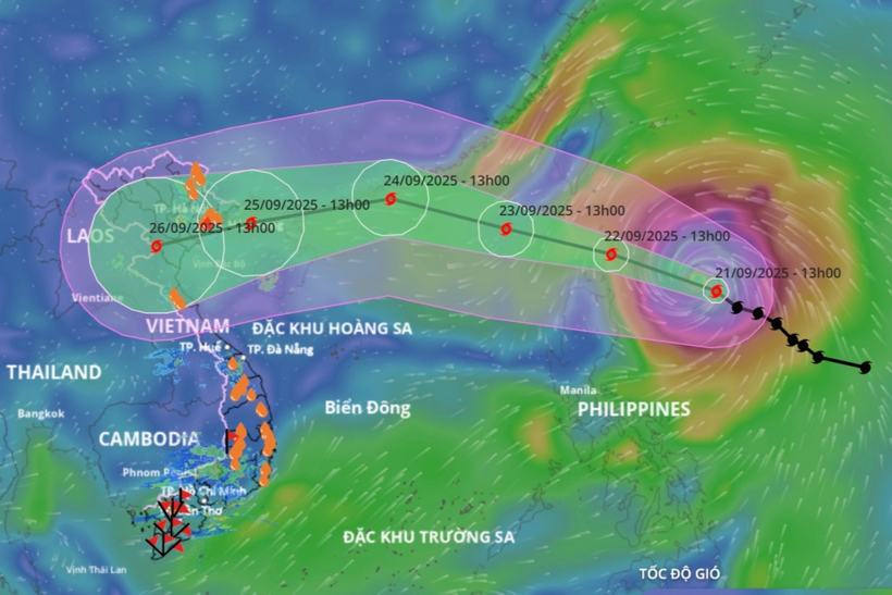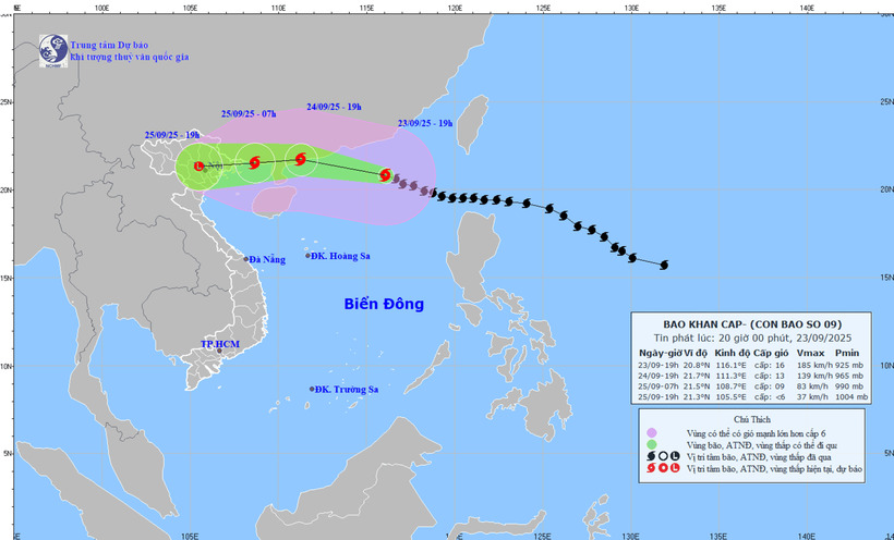 Sức gió mạnh nhất vùng gần tâm siêu bão Ragasa cấp 16–17 (184–221 km/giờ), giật trên cấp 17. Bão di chuyển theo hướng Tây Tây Bắc với tốc độ khoảng 20 km/h.