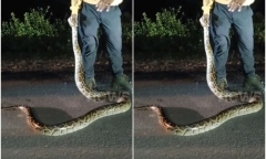 Clip: Cả làng náo loạn vì trăn dài 3,3m bò qua đường